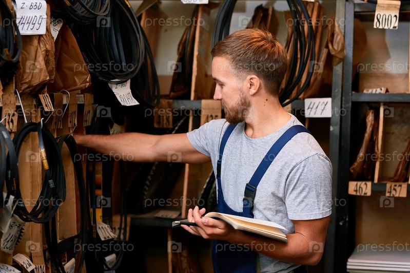 Механик в помещении для хранения