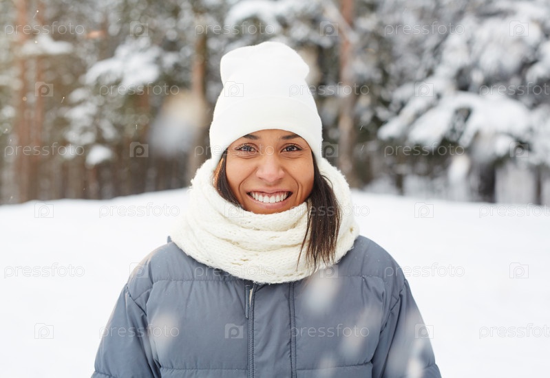 Смешанная раса девушка под падающим снегом