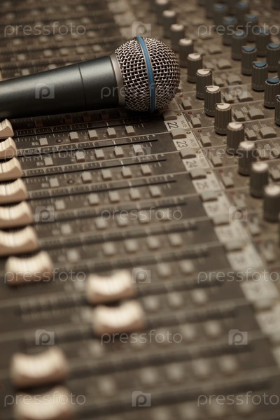Микрофон лежит на пульте микшера