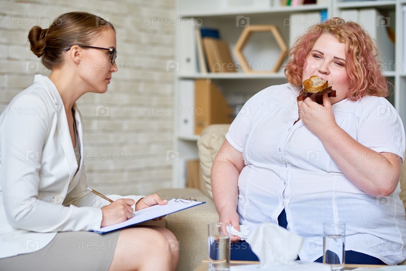 Женщина с ожирением консультируется о расстройстве пищевого поведения