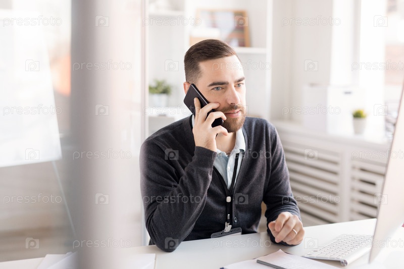 Управляющий офисом разговаривает по телефону