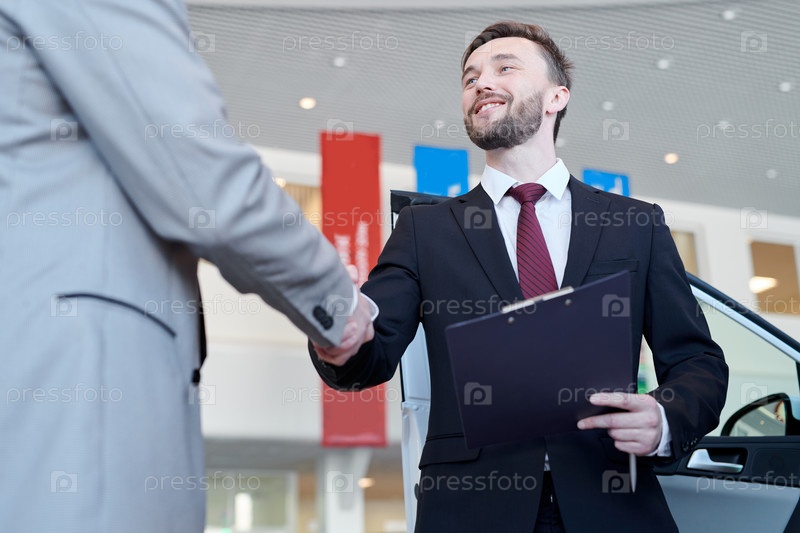 Продавец, продающий новый автомобиль