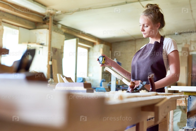 Женщина - плотница, работающая в магазине