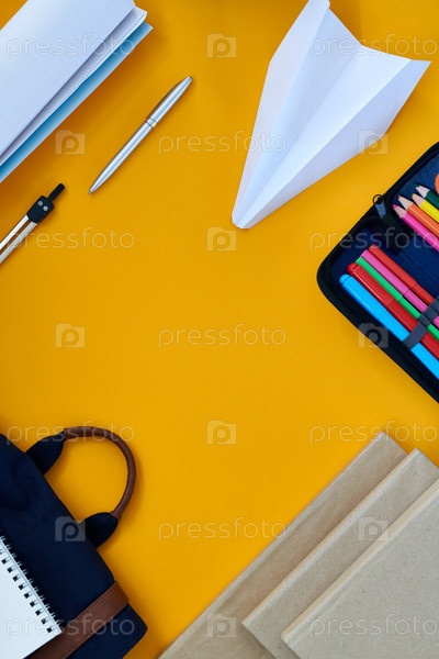 Желтый фон с офисными принадлежностями