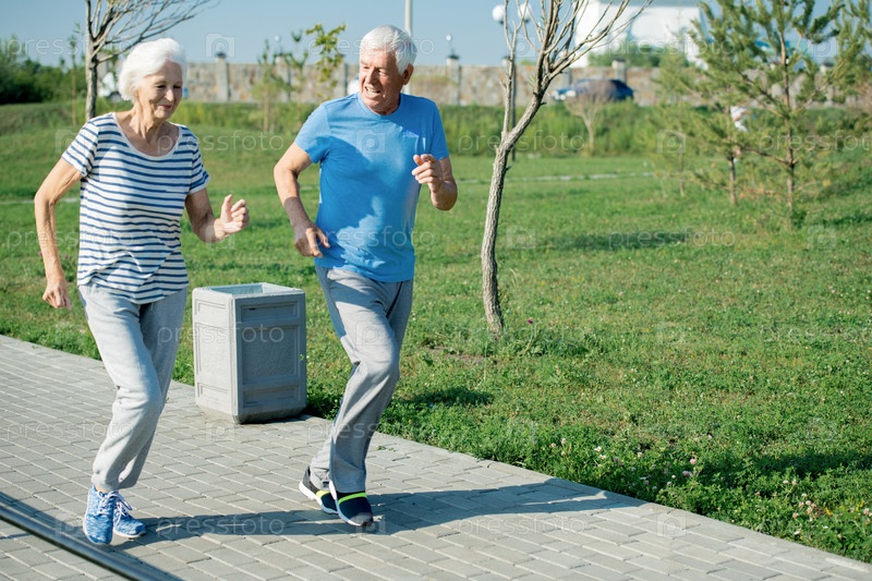 Активная старшая пара, бегающая на открытом воздухе