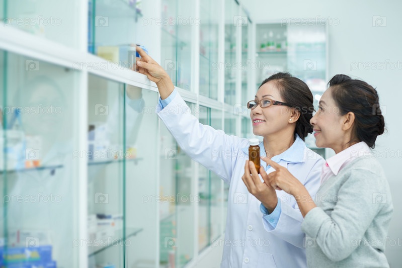 Фармацевт, помогающий клиенту