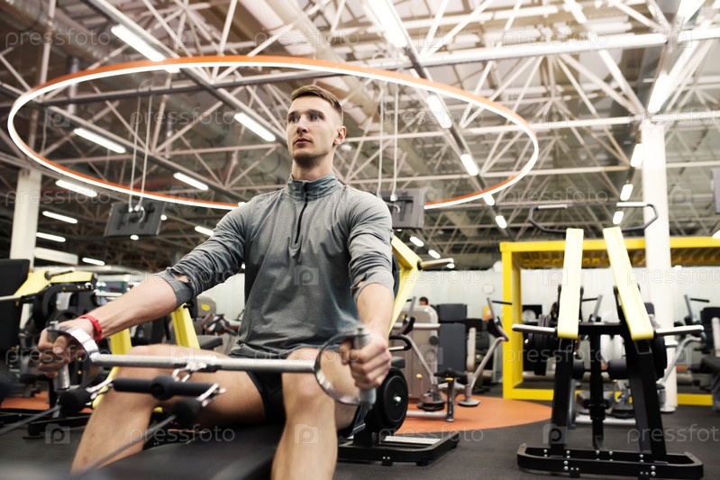 Спортсмен, использующий машины в спортзале