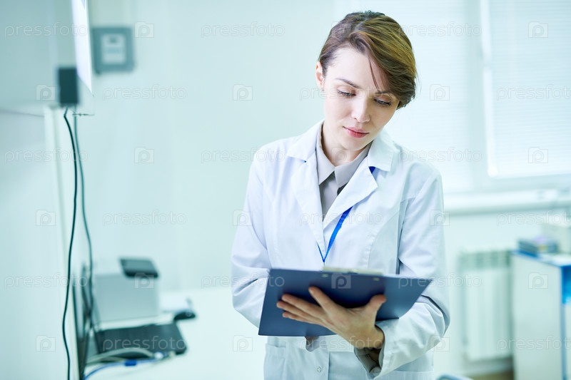 Врач стоит с буквой и делает заметки
