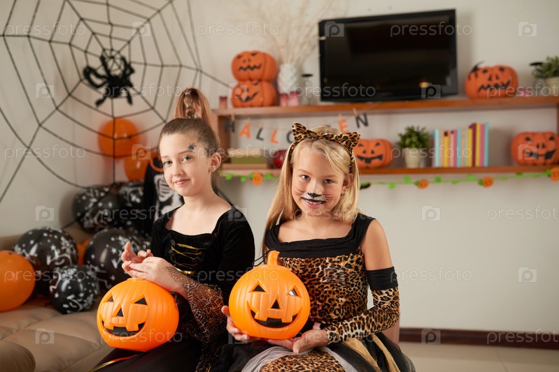 Девочки, позирующие в костюмах на Хэллоуин