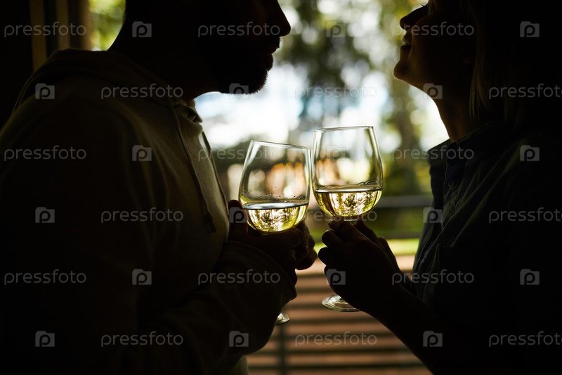 Любящая пара пьет вино