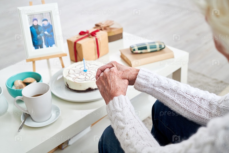 Старшая женщина празднует день рождения мужа
