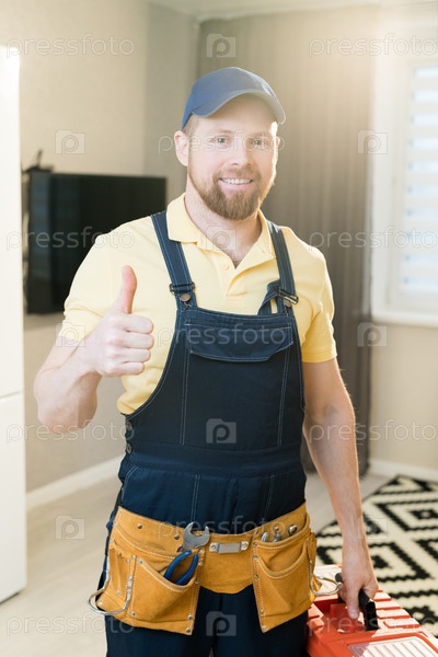 Веселый мастер, показывающий большой палец вверх