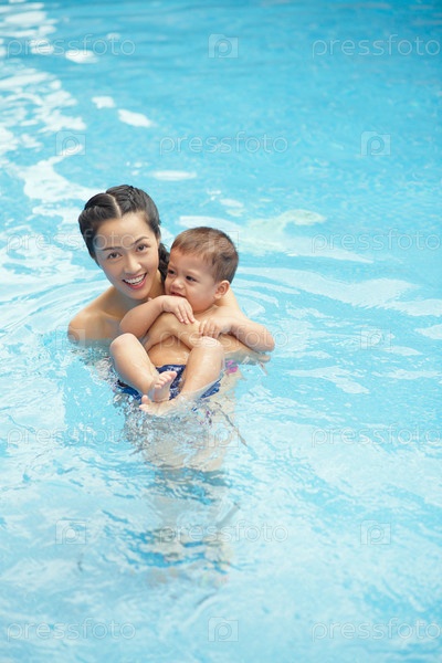 Мать учит сына плавать по-китайски