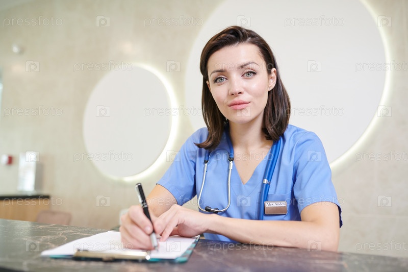 Женщина-врач на столе