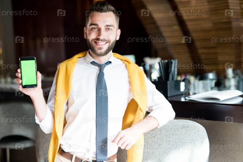 Красивый бизнесмен представляет приложение