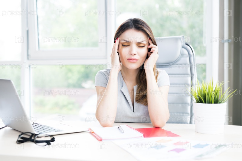 Современная бизнесвумен страдает от головной боли