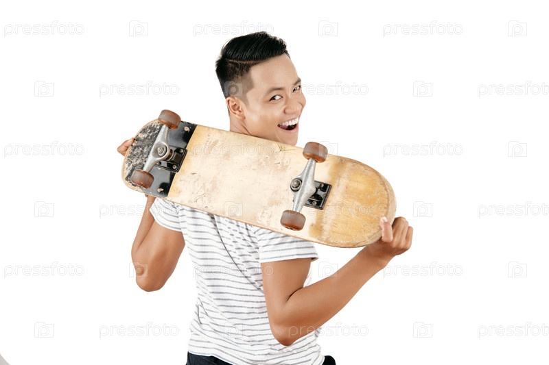 Счастливый парень со скейтбором