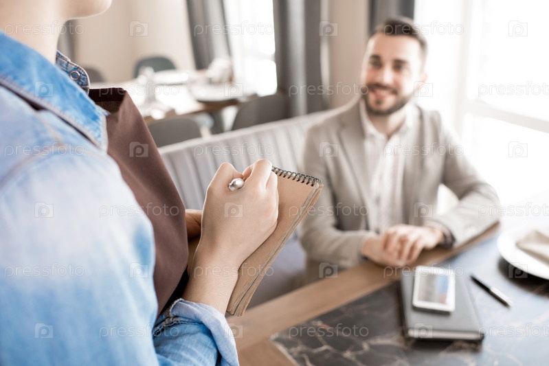 Официантка пишет заказ клиента в кафе