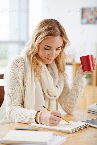 Рисует молодую женщину