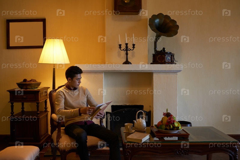 Молодой человек отдыхает с хорошей книгой