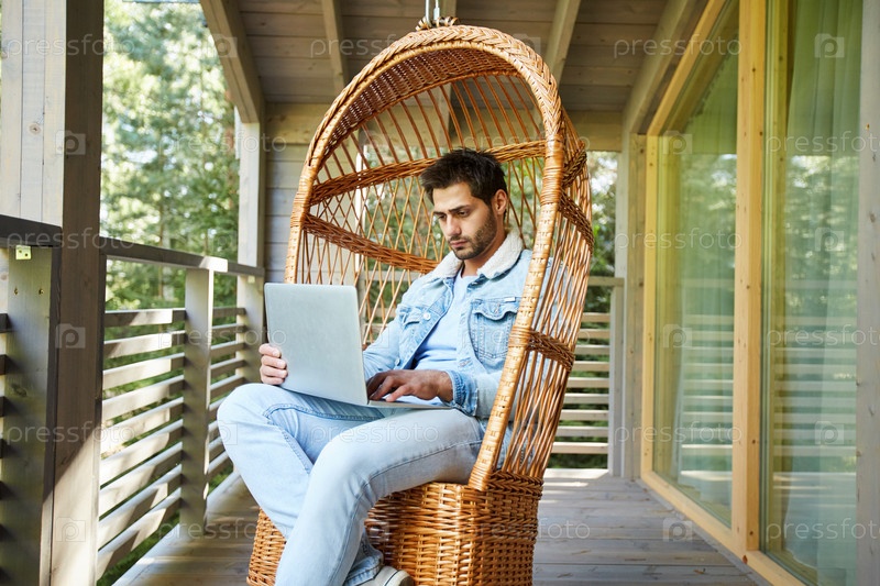 Загруженный фрилансер просматривает Интернет на балконе
