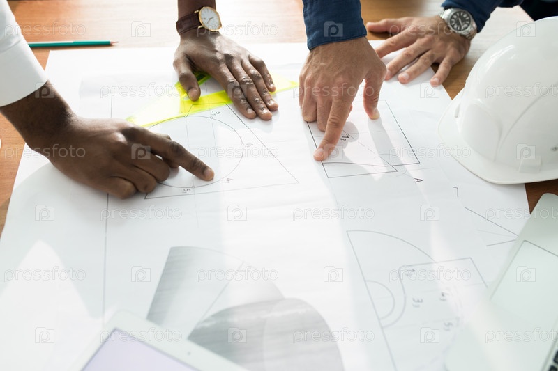 Строительные инженеры вместе анализируют эскиз
