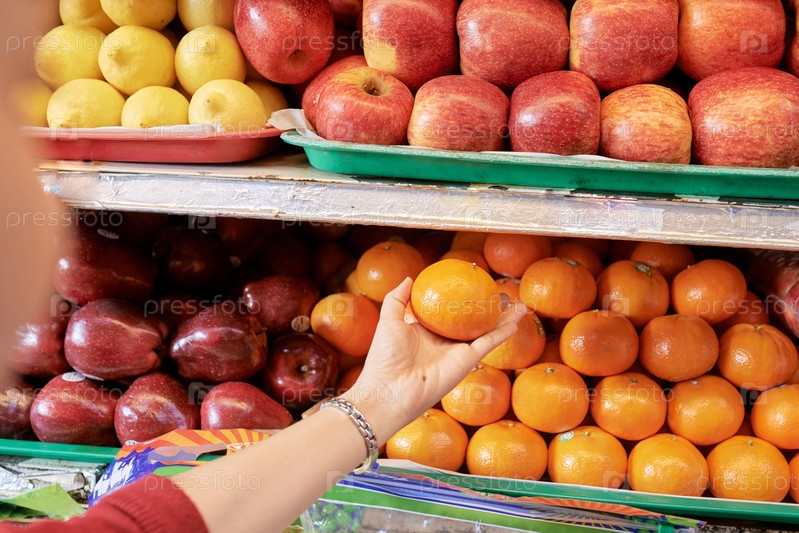 Женщина выбирает мандарины