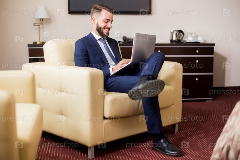 Красивый бизнесмен наслаждается пребыванием в отеле