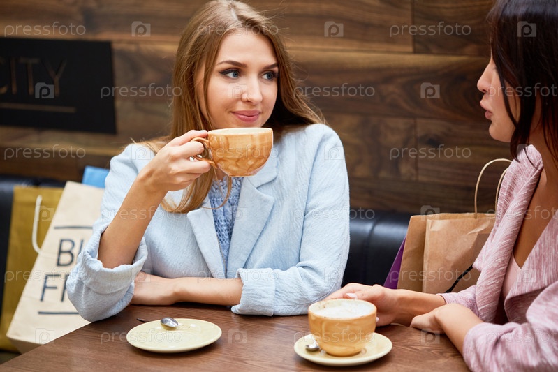 Молодые женщины в кафе торгового центра