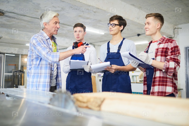 Плотник отвечает на вопросы молодых сотрудников