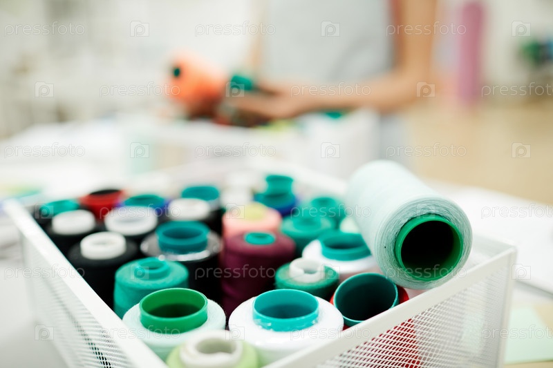 Контейнер с красочными катушками нитки