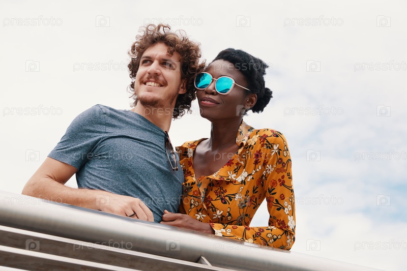 Стильная пара, стоящая у забора