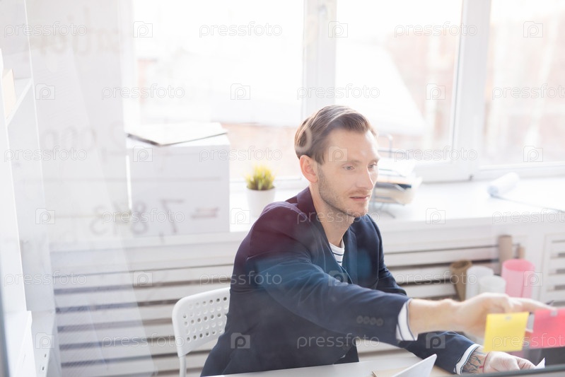 Взрослый офисный работник на рабочем столе