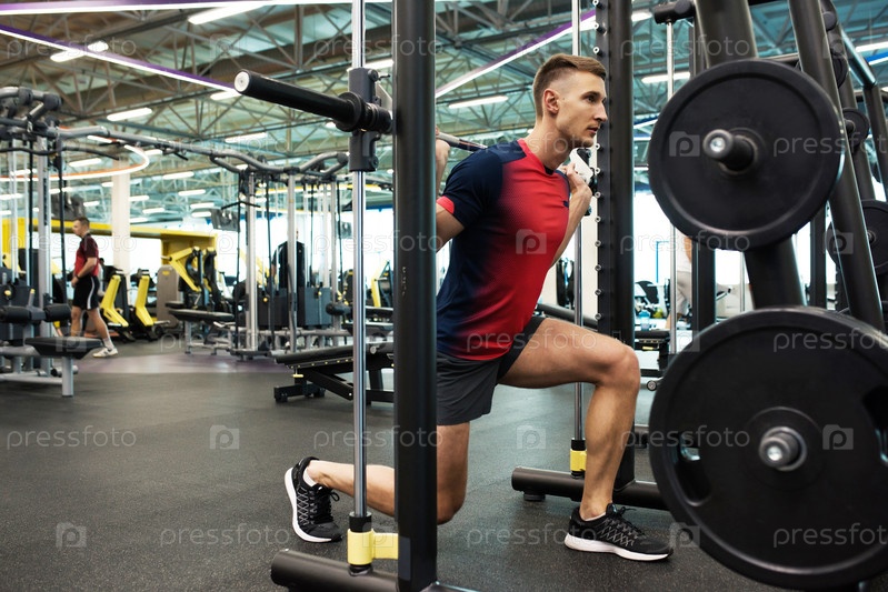 Спортсмен тренируется в современном тренажерном зале
