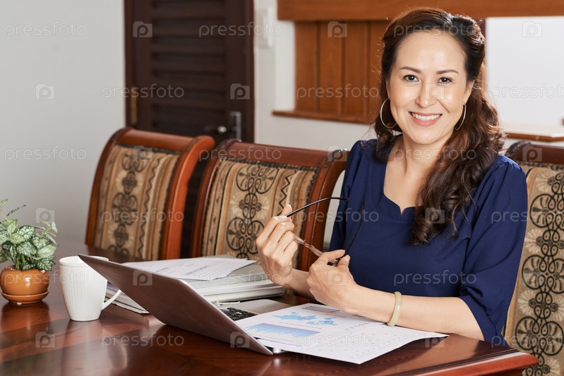 Улыбающаяся деловая женщина дома