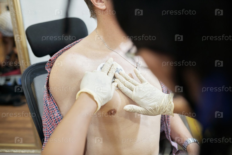 Мастер, использующий татуировочный штенцель