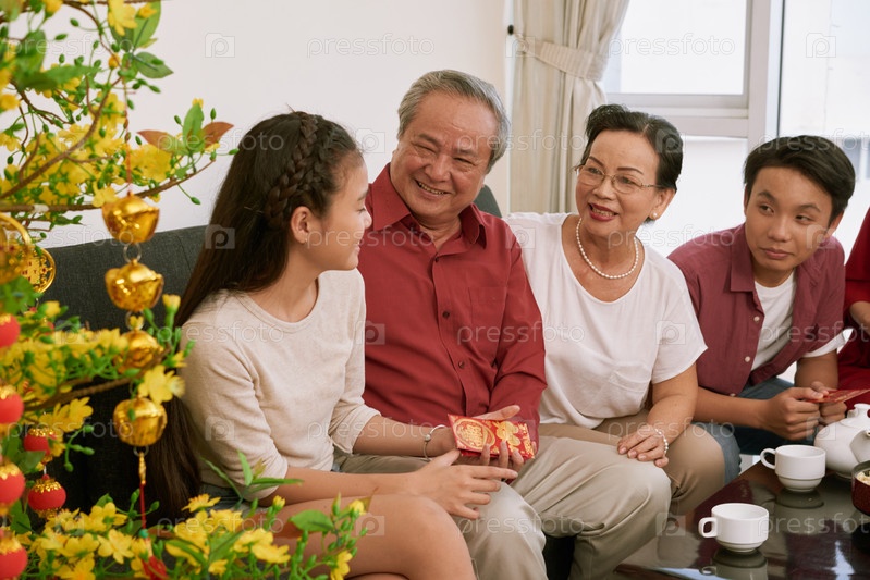 Семья празднует лунный Новый год