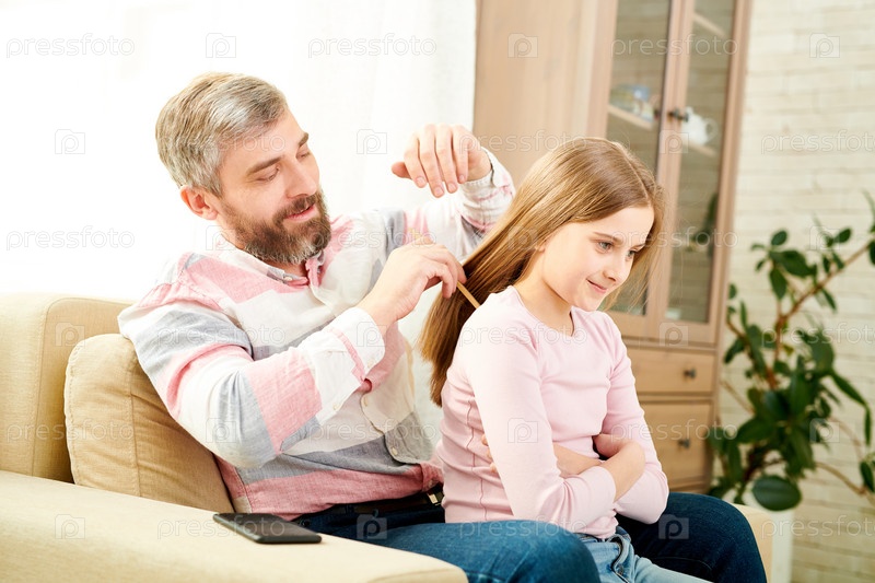 Расчесывание волос маленькой дочери