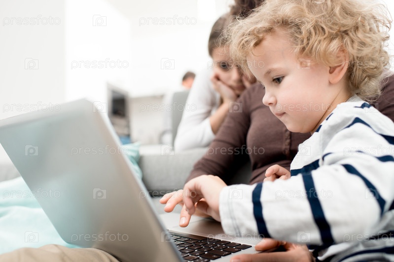 Маленький мальчик, использующий ноутбук