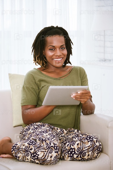 Красивая женщина с цифровым планшетом