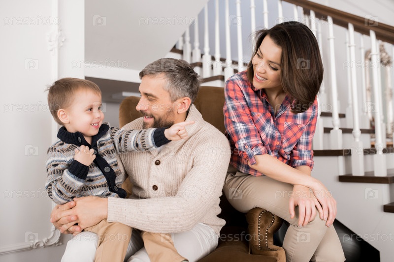 Счастливая современная семья дома