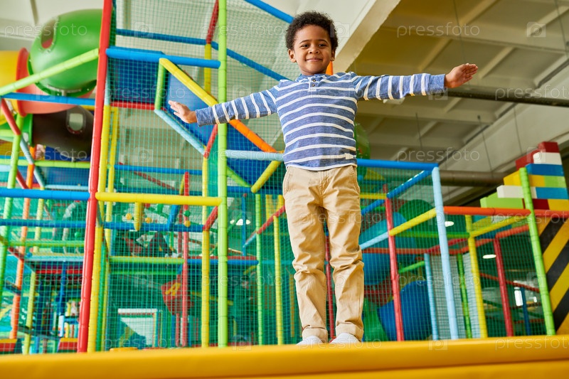 Милый мальчик позирует в игровой зоне