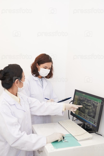 Врачи обсуждают панорамную рентгенографию в кабинете