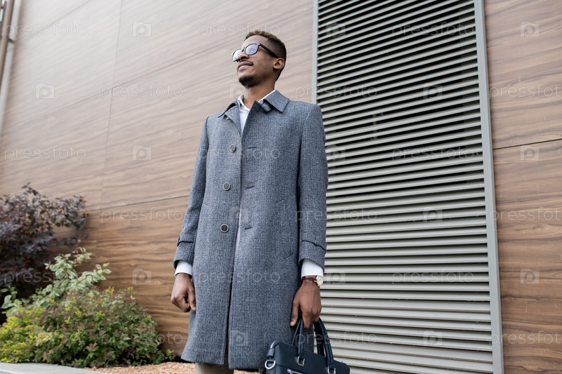 Вдумчивый стильный африканский бизнесмен с портфелем