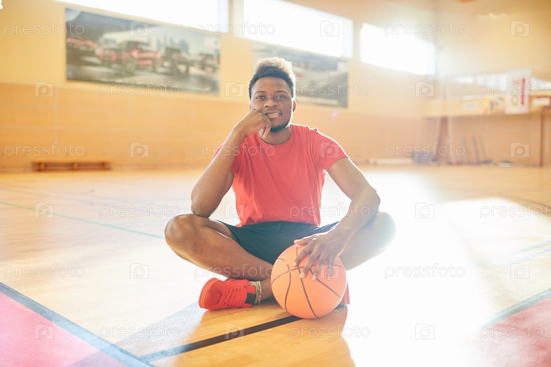 Афроамериканский спортсмен, сидящий на поле суда
