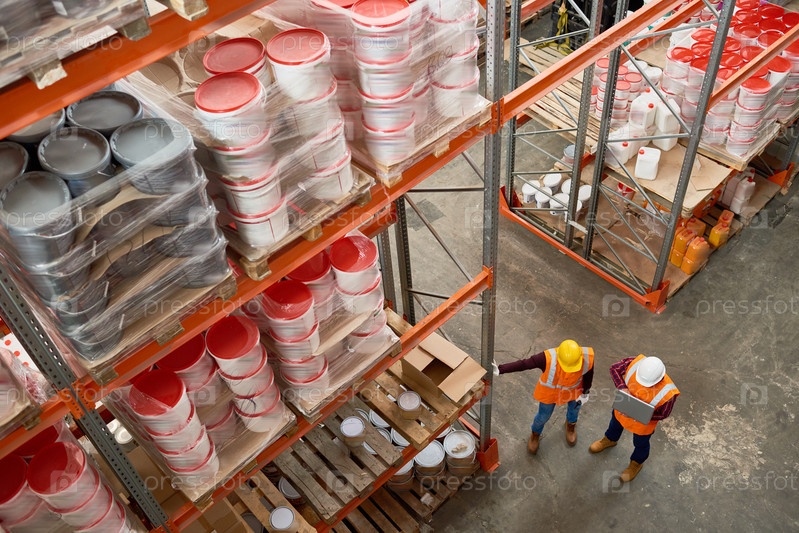 Вид на рабочих в современном складе выше