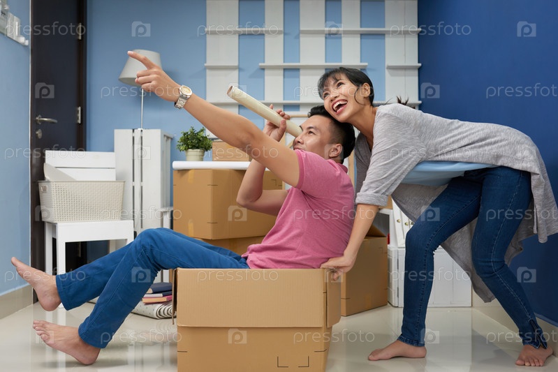 Пара весело проводит время в новом доме