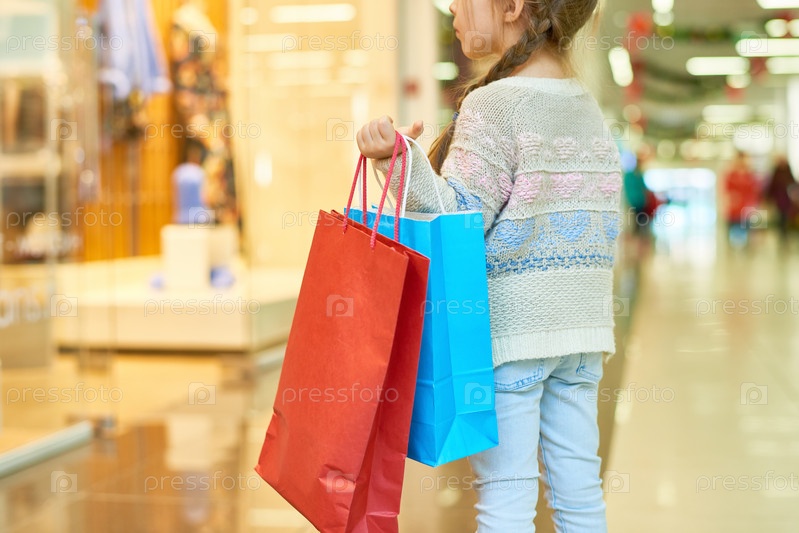 Милая маленькая девочка, держащая сумки