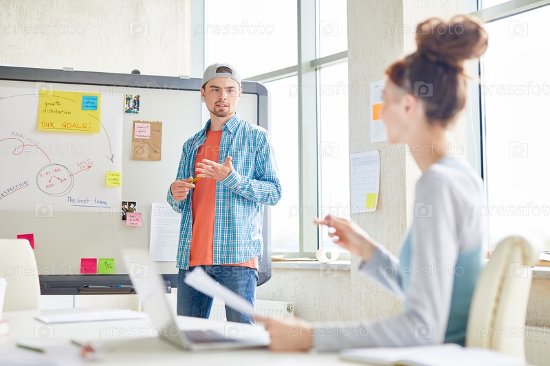 Хипстерский сотрудник объясняет цели коллеге