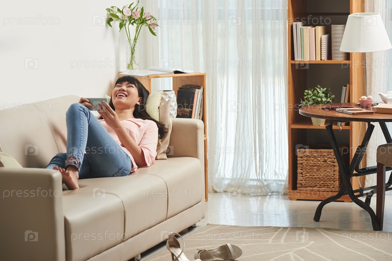 Женщина смотрит смешные видео